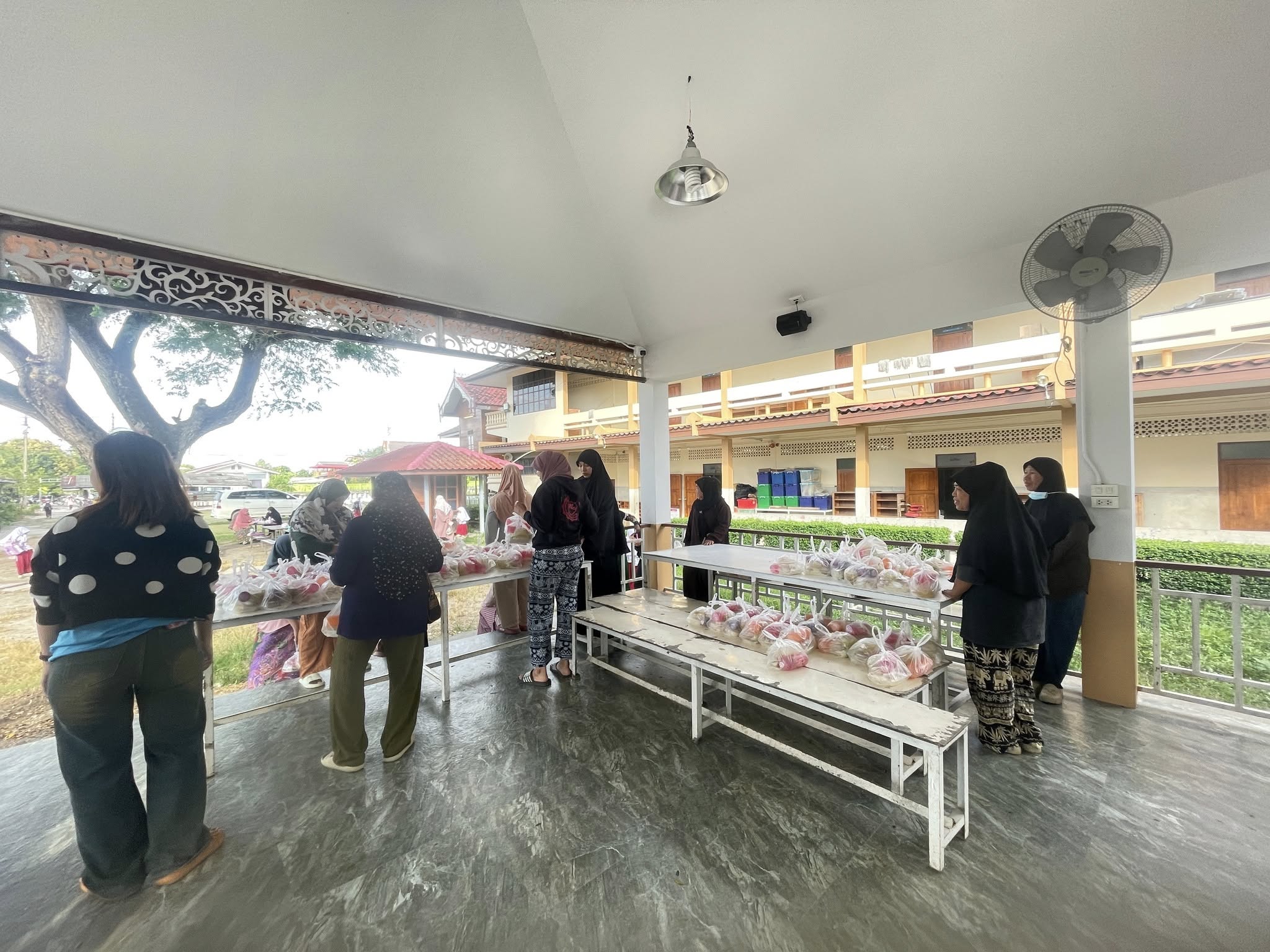 จัดเลี้ยงอาหารสำหรับคณะครูและนักเรียนฟัรดูอีนโรงเรียนดารุ้ลอาบิดีน สุเหร่าแดง