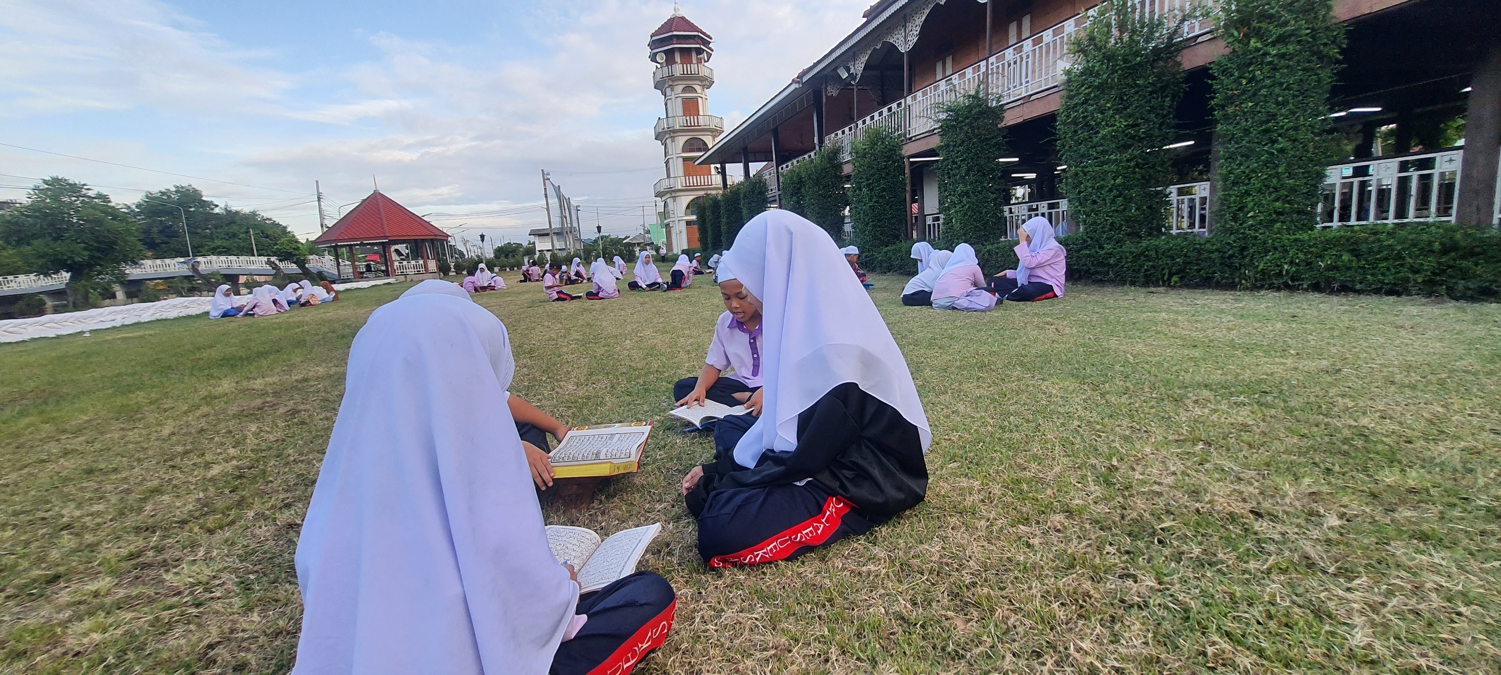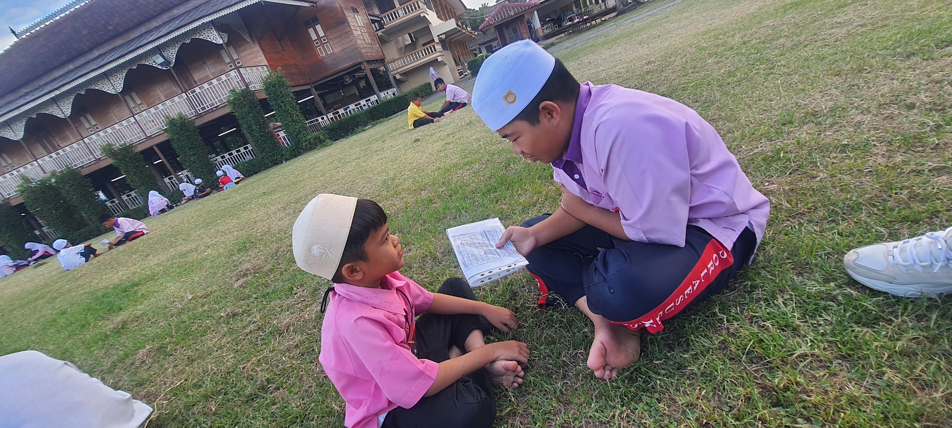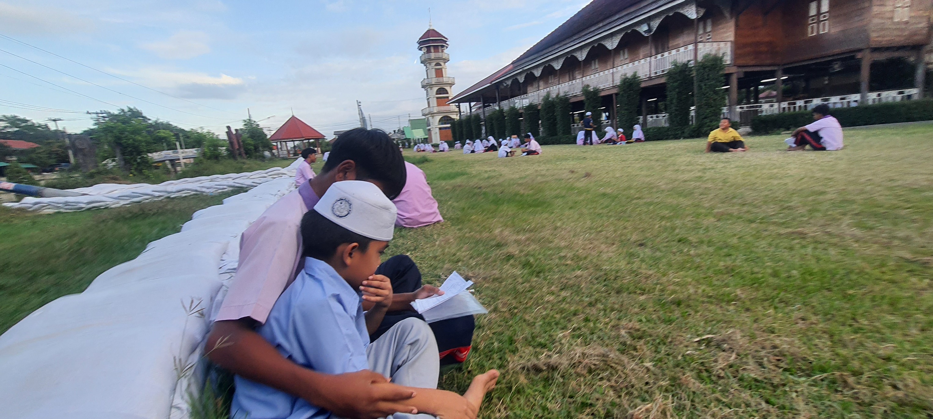 บรรยากาศมันได้ แดดร่ม ลมเย็น น้ำเต็มกำลังดี สอนน้อง "ท่องบท"