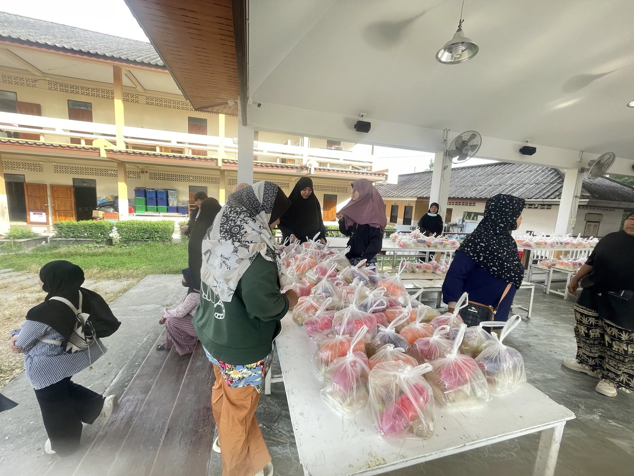 จัดเลี้ยงอาหารสำหรับคณะครูและนักเรียนฟัรดูอีนโรงเรียนดารุ้ลอาบิดีน สุเหร่าแดง