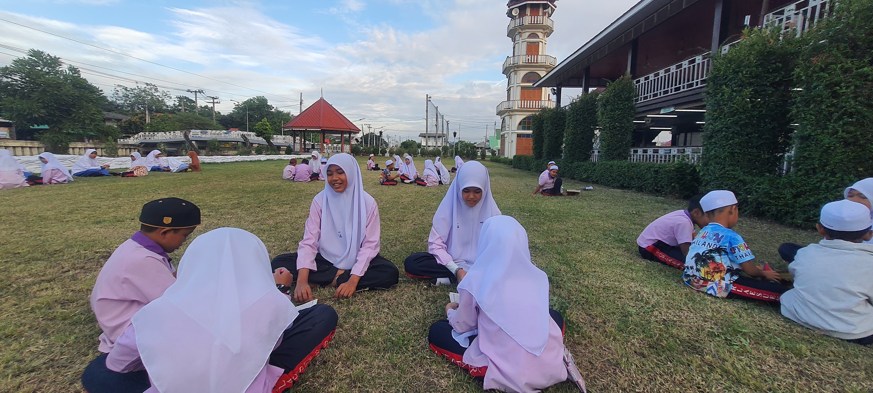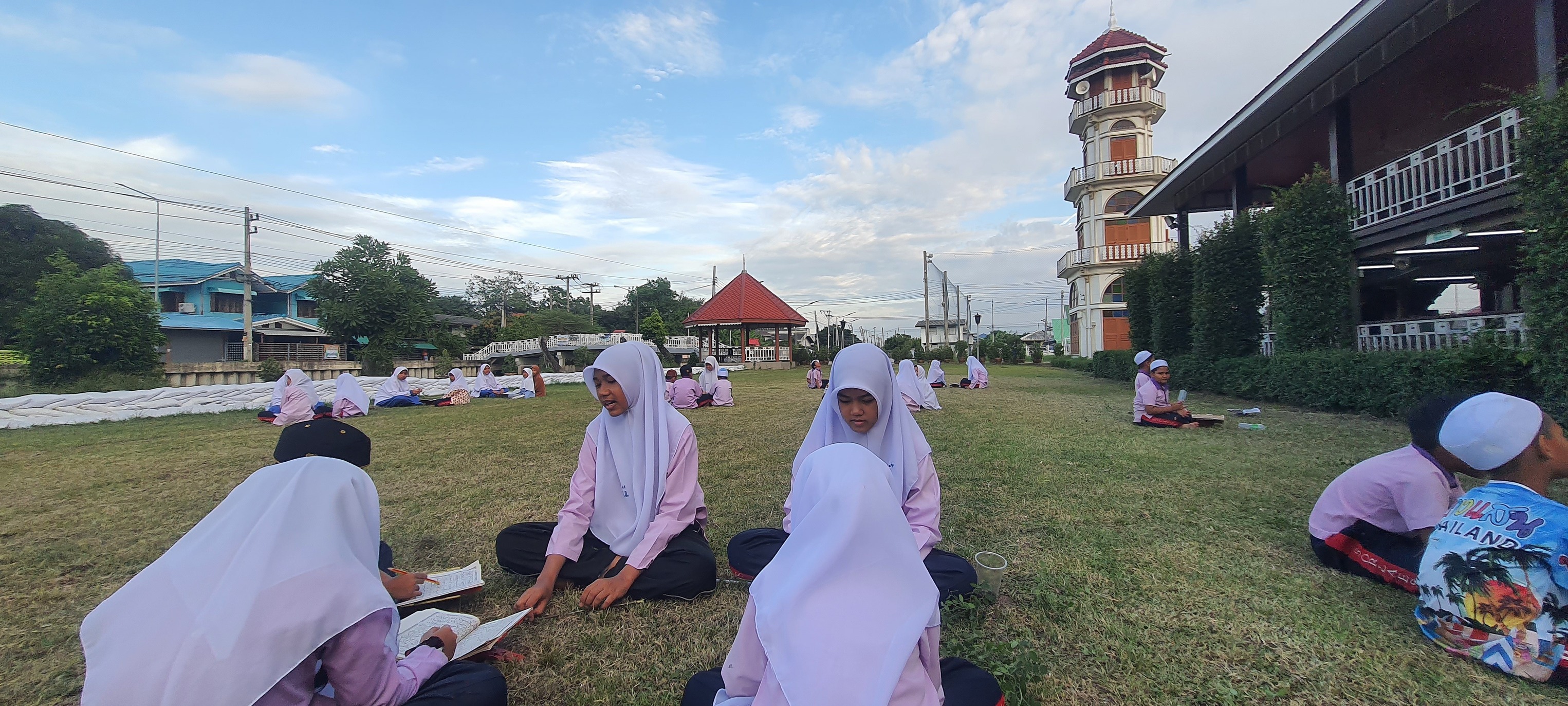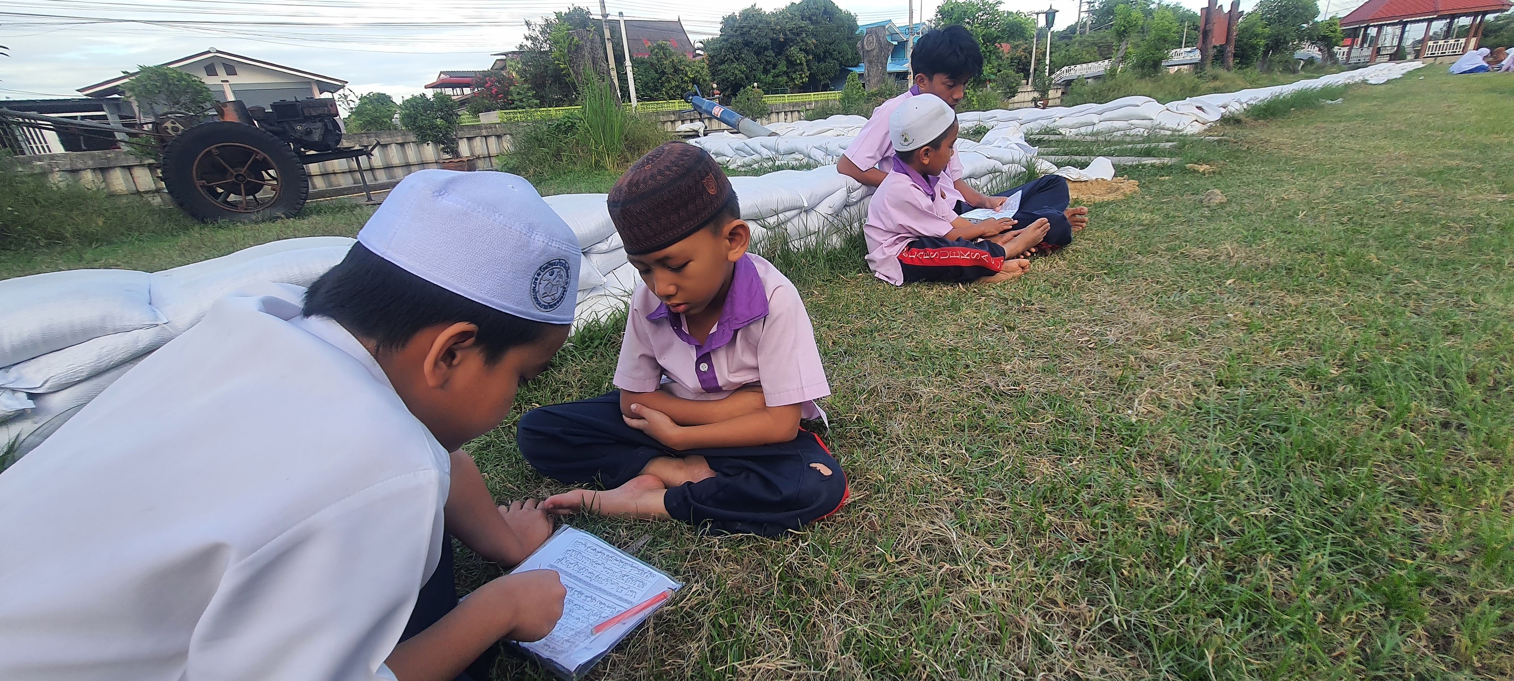บรรยากาศมันได้ แดดร่ม ลมเย็น น้ำเต็มกำลังดี สอนน้อง "ท่องบท"