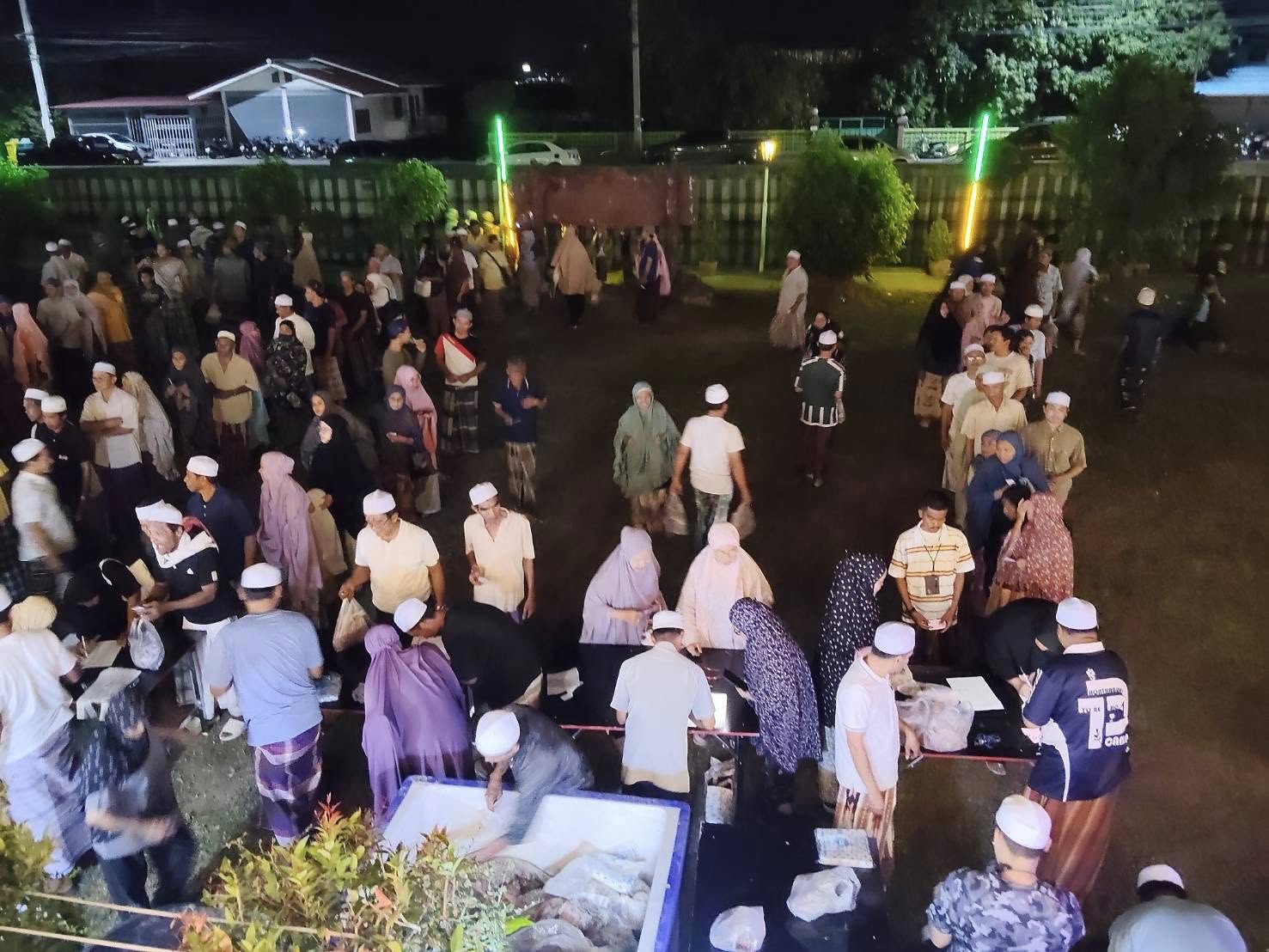ซึ่งเนื้อกุรบ่านนี้ส่วนหนึ่งมัสยิดได้จัดแจกให้ทุกครอบครัวสัปปุรุษไปแล้ว1 ครั้งเมื่อช่วงอีดอัฎฮาปีที่ผ่านมา